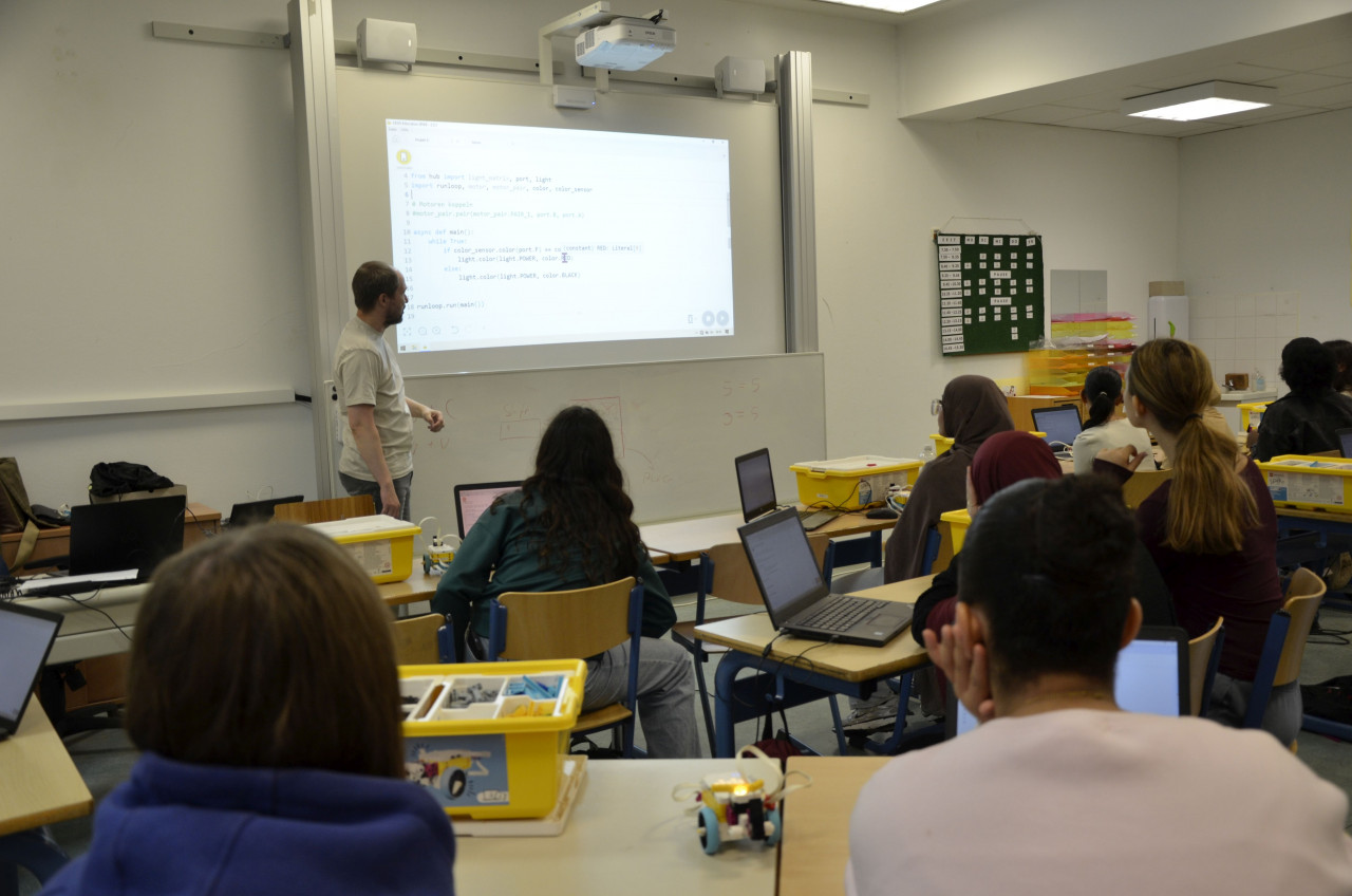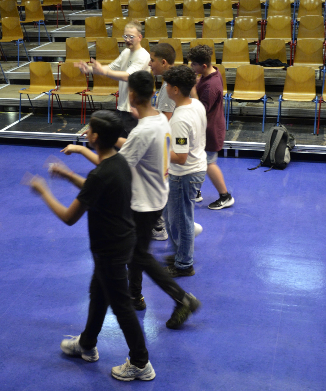 Die Deutsche Kinder- und Jugendstiftung hat dafür verschiedene Anbieter in die Schule geholt. So gab es einerseits Robotik- und Programmierkurse von Robo-Studio, Robot School und Horizonte, andererseits Videoproduktion und Tanzworkshops von Heartbeat sowie Rugby-Training von Eintracht Frankfurt. Die Jugendlichen nahmen 2 tage an dem einen und 2 Tagen an dem anderen Workshops teil. Dazu wurden die Gruppen neu gemischt, damit die Jugendlichen sich eher trauten, neue Wege auszuprobieren.