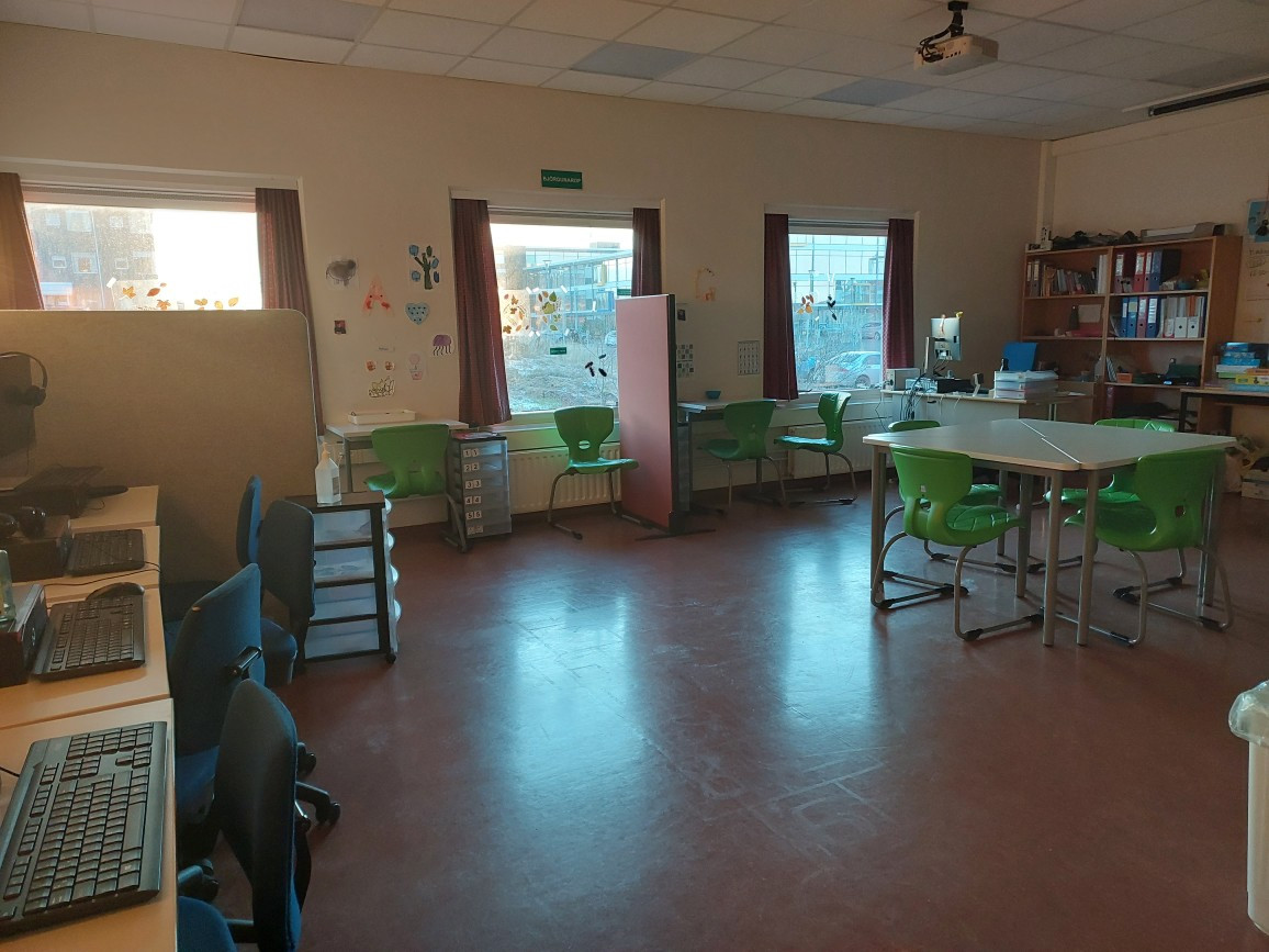 Etwa 35-40 Schüler mit besonderen Bedürfnissen in den Bereichen Lernen und geistige Entwicklung werden in kleinen Gruppen von Förderschullehrkräften unterrichtet und durch Fachpersonal unterstützt. Der Unterricht ist auf vier Schulstunden pro Tag ausgelegt, wobei jede Stunde 60 Minuten dauert. Täglich finden eine Stunde Isländisch und eine Stunde Mathematik statt, während die übrigen Stunden kreative, künstlerische oder praktische Schwerpunkte wie Theater, Musik, Kunst, Handarbeit, Lebenspraxis, Hauswirtschaft und Soziales Miteinander abdecken. Jede Kleingruppe wird in einem hervorragend ausgestatteten, eigenen Klassenraum unterrichtet, der auf die individuellen Bedürfnisse der Einzelnen abgestimmt ist. Förderschüler haben die Möglichkeit, an regulären Kursen teilzunehmen, was jedoch eher selten in Anspruch genommen wird. In den ersten zwei Jahren liegt der Fokus auf schulischen Inhalten, während in den darauffolgenden Jahren die Vorbereitung auf den Arbeitsmarkt im Vordergrund steht. Besonders beeindruckend waren die riesigen und umfangreich ausgestatteten Hallen, in denen sich Werkstätten für die Bereiche Automobile oder Elektronik befanden. Die Jugendlichen können an Fahrzeugen arbeiten und Reparaturen unter Anleitung von KFZ-Mechanikern durchführen, wodurch sie erste praktische Erfahrungen sammeln, die sie in ihrer beruflichen Orientierung unterstützen. Durch die enge Zusammenarbeit mit Betrieben wird der Übergang in den Arbeitsmarkt erleichtert und den Schülern werden konkrete Perspektiven für ihre berufliche Zukunft eröffnet.