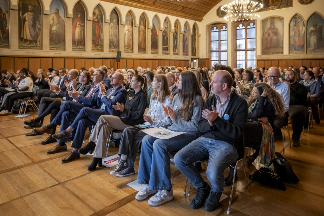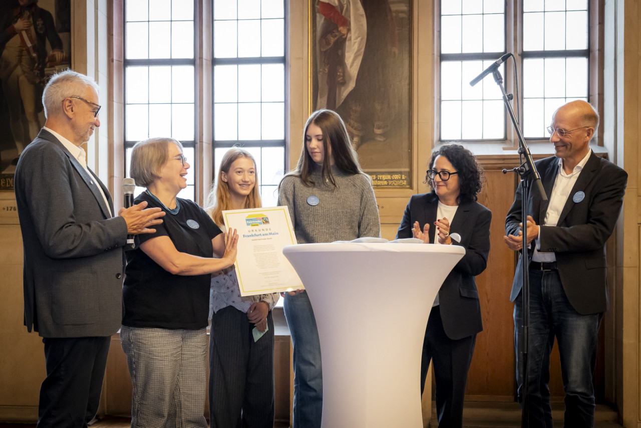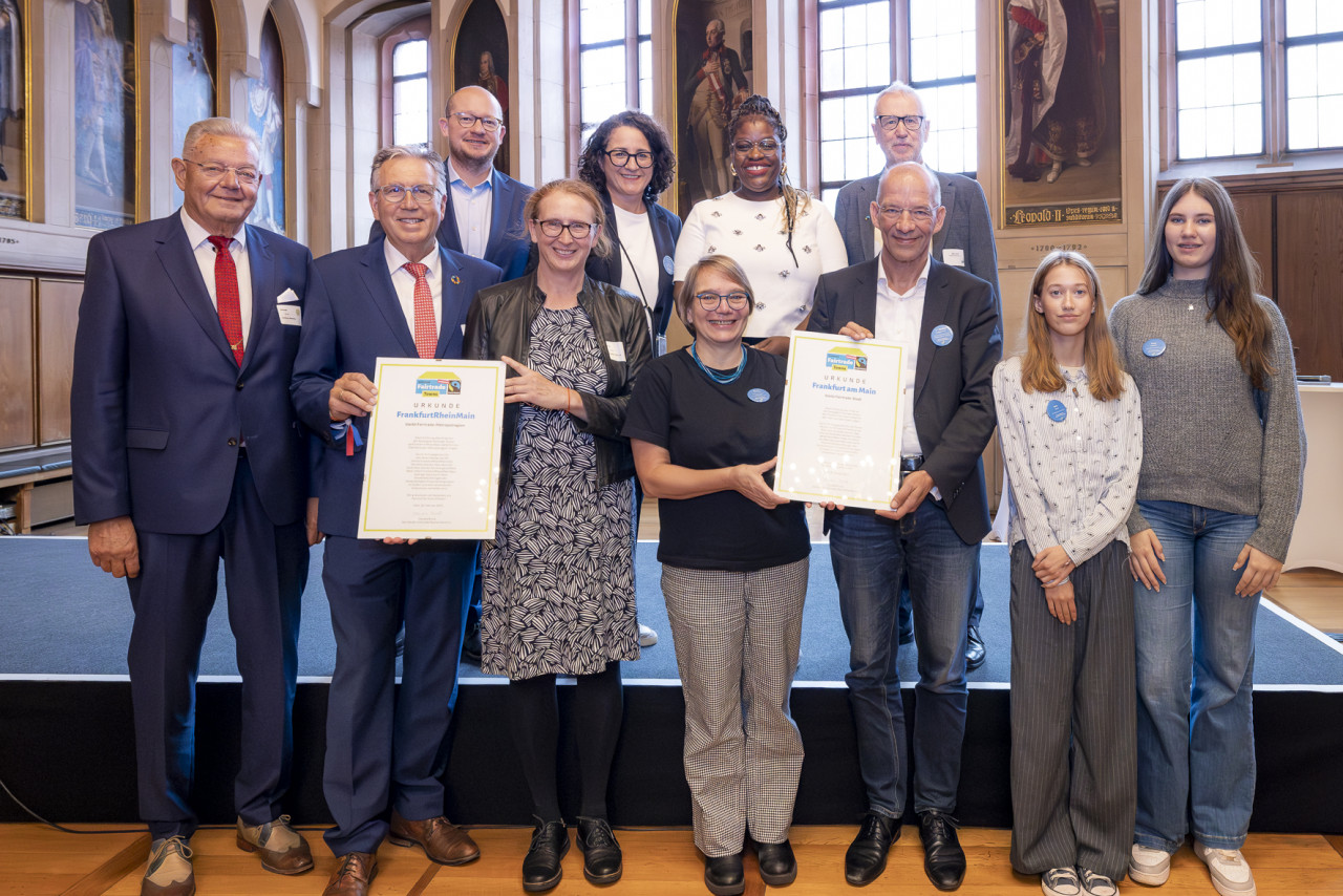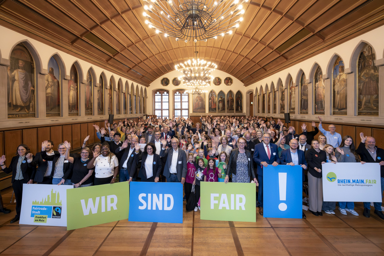 Am 24.09.2025 fand im Kaisersaal der Festakt zum Tag der fairen Beschaffung statt. Dort wurde die Stadt Frankfurt erneut als Fair Trade Town ausgezeichnet. Die Ernst-Reuter-Schule II ist als Fair Trade School ein Teil dieses Engagements. Als Vertreterinnen und Vertreter waren Alexander Burghardt, Lehrkraft unserer Schule und Leiter des Projektes Fair Trade School, sowie Aino Nord und Enna Merkel, Schülerinnen unserer Schule und ebenfalls engagiert im Projekt, anwesend. Aino und Enna waren auch auf dem Podium vertreten und konnten unser Engagement überzeugend darstellen. Herzlichen Glückwunsch, Frankfurt!