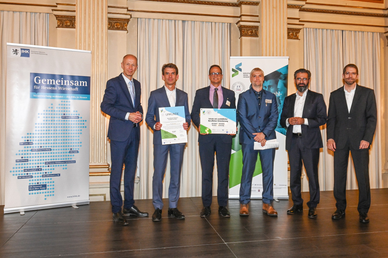 Die Auszeichnung durch die hessischen Ministerien für Kultus, Bildung und Chancen sowie für Wirtschaft, Energie, Verkehr, Wohnen und ländlichen Raum fand auf Einladung des Hessischen Industrie- und Handelskammertages im Palais Friedrichsstraße in Wiesbaden statt. Wir möchten uns bei allen unseren Akteuren und Kooperationspartner für das Engagement bedanken.