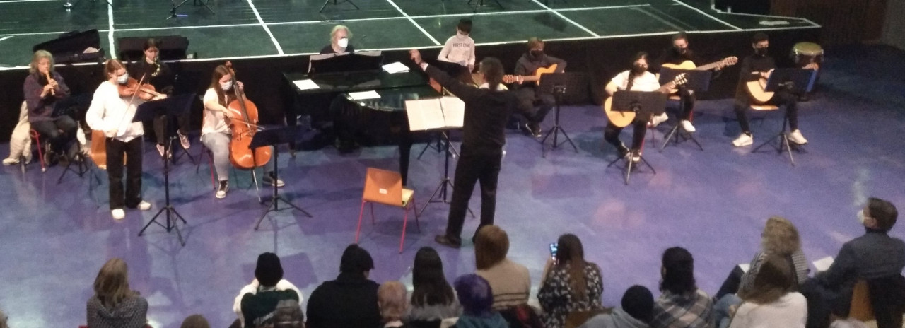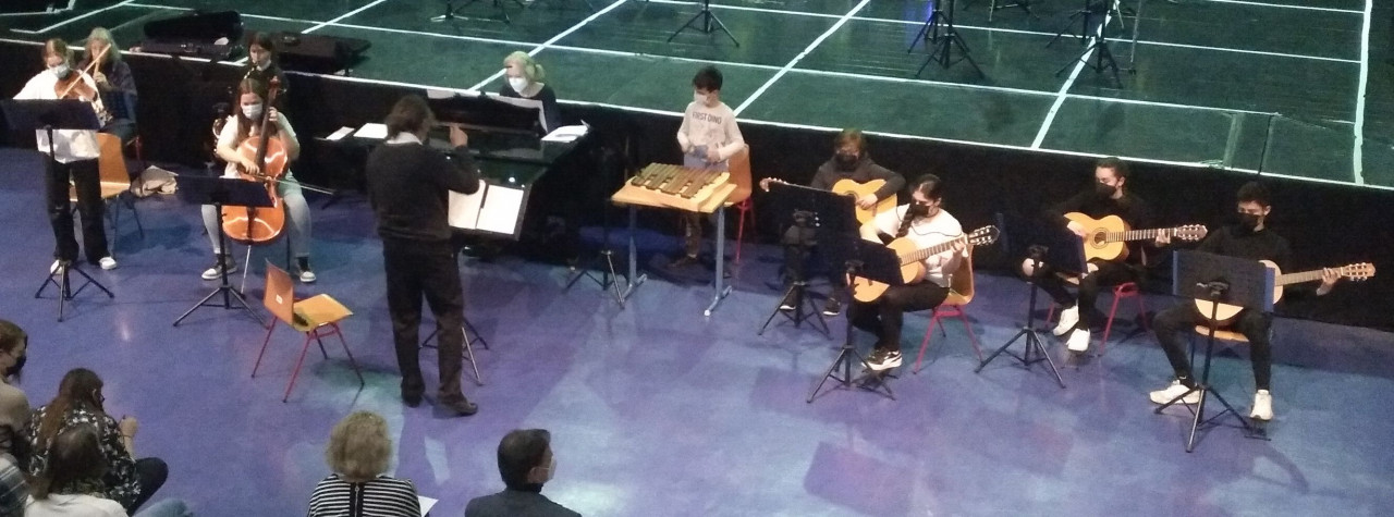 Der erste Teil wurde von unserem Schulorchester und dem Kurs Saiteninstrumente gestaltet, das sich aus Schüler*innen aus allen Jahrgängen unserer Schule zusammensetzt. Geleitet wird das Schulorchester von Herrn Wolfram Spitta.