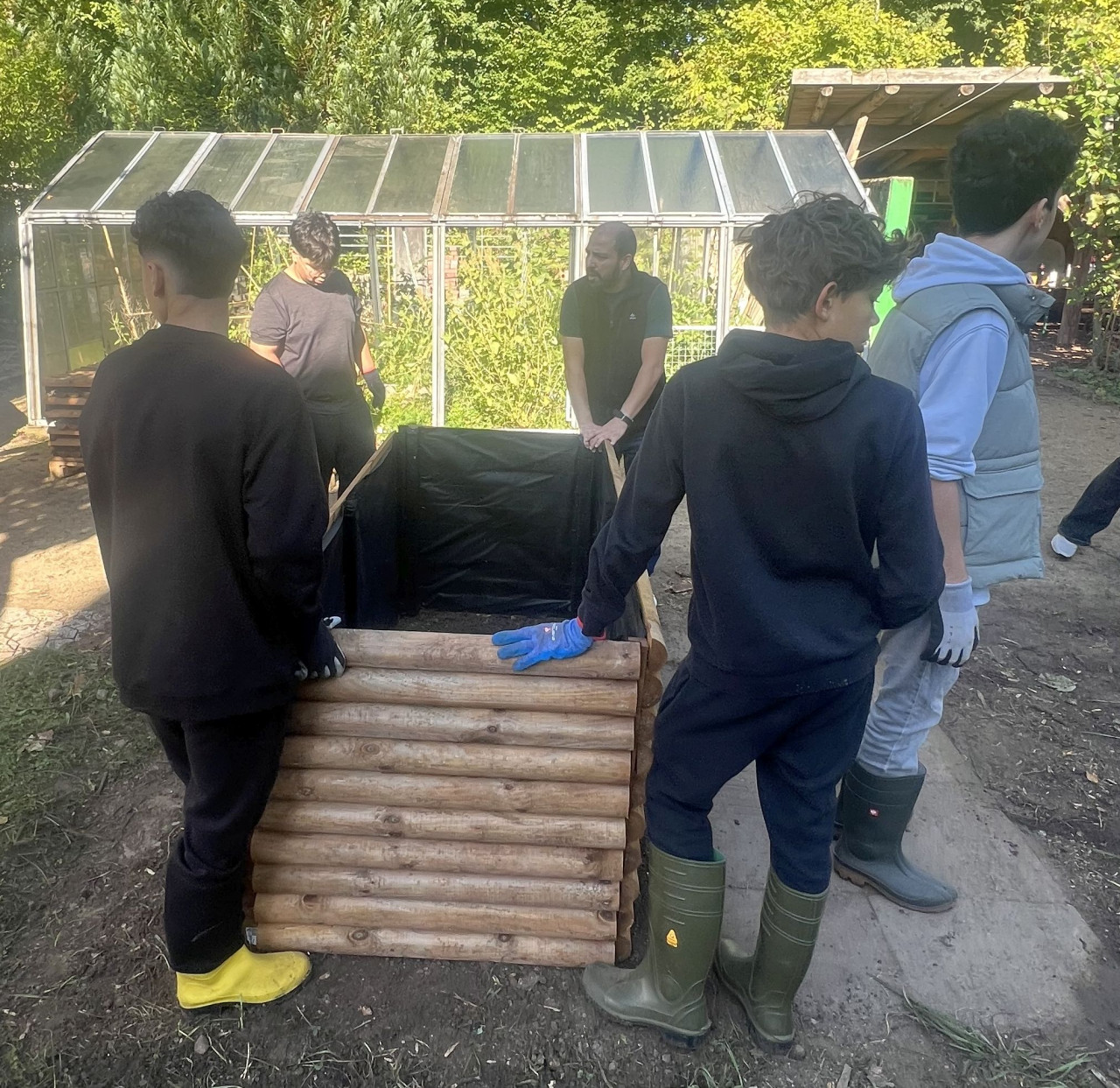Zu Beginn haben die Jugendlichen die alten Hochbeete abgebaut, um Platz für neue, stabile Hochbeete zu schaffen. Diese Arbeit geschah in enger Absprache mit der Berufsorientierungsklasse für den Bildungsgang Geistige Entwicklung(BO), da die alten Beete bisher dort genutzt wurden – vor allem für den Gemüseanbau, der in der BO-Küche verarbeitet wird. Auch in Zukunft bleibt die inklusive Zusammenarbeit wichtig: Gemeinsam wird nun geplant, welche Pflanzen in die neuen Hochbeete einziehen sollen. Ein besonderes Ziel des Projekts ist es, ein autonomes Bewässerungssystem zu entwickeln und im Schulgarten einzusetzen. Dabei geht es nicht nur um die Frage, wie nachhaltig bewässert werden kann, sondern auch um technische Lösungen, die ressourcenschonend