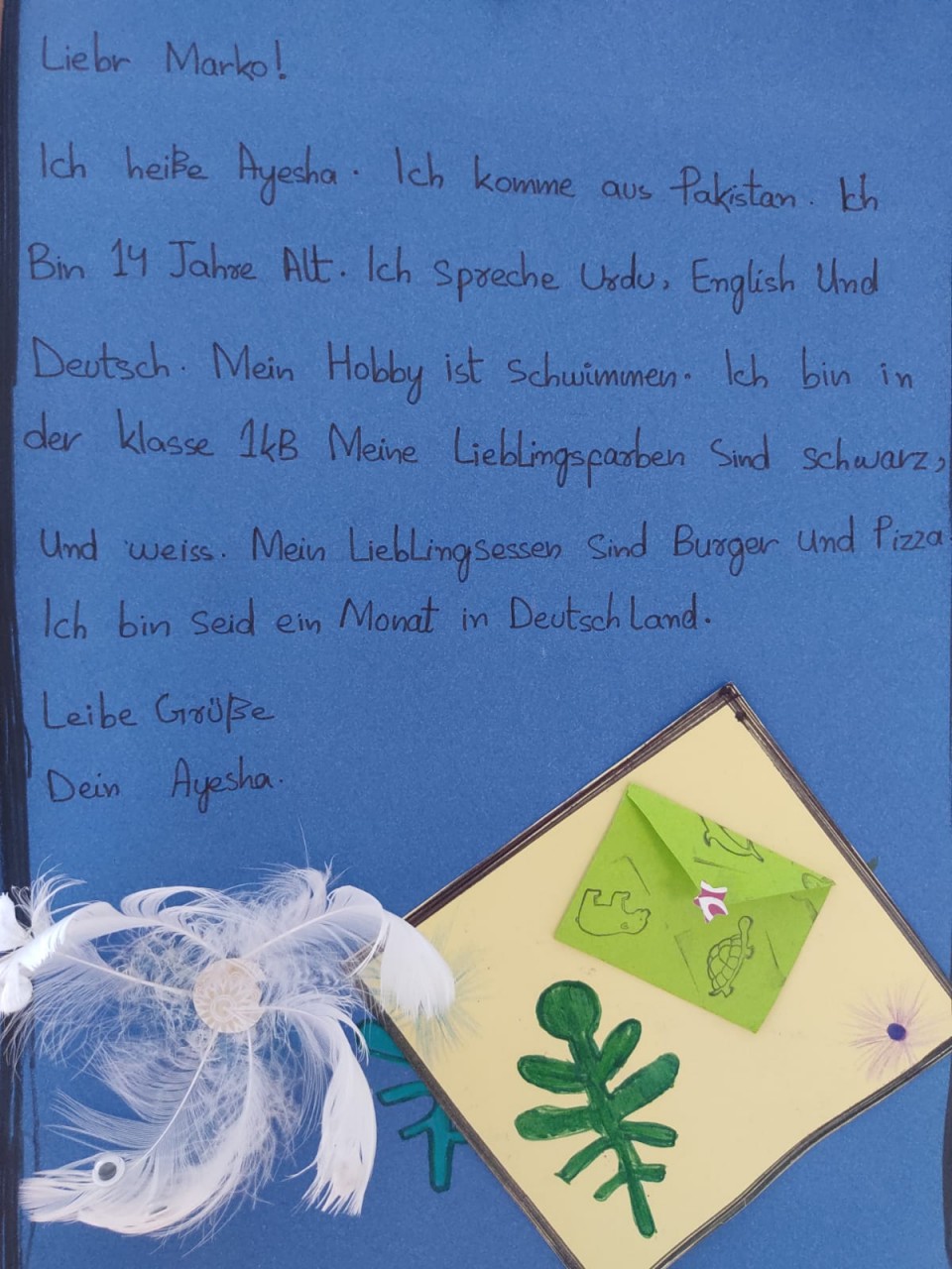 In die Intensivklassen kommen immer wieder neue Schüler/-innen aus der ganzen Welt. Dank dieser persönlichen Kommunikationsform zeigen wir uns einander die Wertschätzung. Die Schüler/-innen der Intensivklassen warten gespannt auf neue Mitteilungen. Alle Briefe sind wertvolle Erinnerungen und werden sorgfältig aufbewahrt. Das ist eine sehr spannende Erfahrung für uns alle.