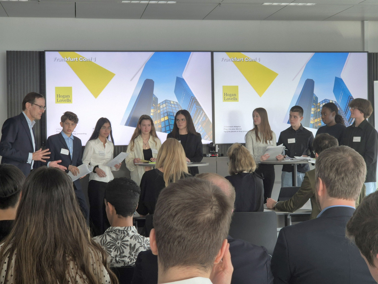Die Abschlussveranstaltung fand am 4. März 2026 in der 38. Etage des Omniturm bei Hogan Lovells in Frankfurt statt. Eine Pro-Gruppe und eine Contra-Gruppe, von jeweils vier Schülerinnen und Schüler, traten gegeneinander an und debattierten über die Fragestellung: „Sollte Alkohol für Jugendliche unter 18 verboten werden?".